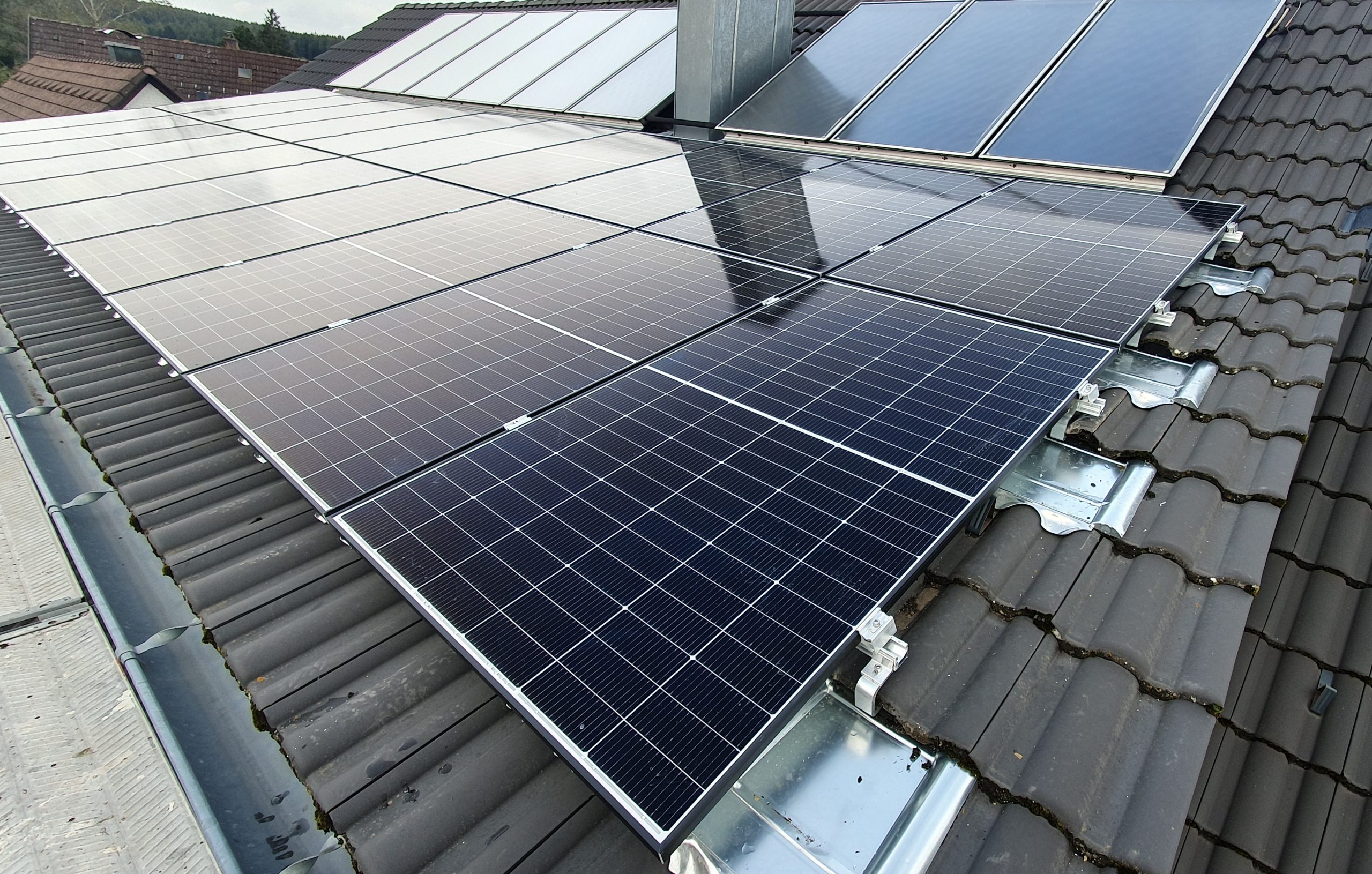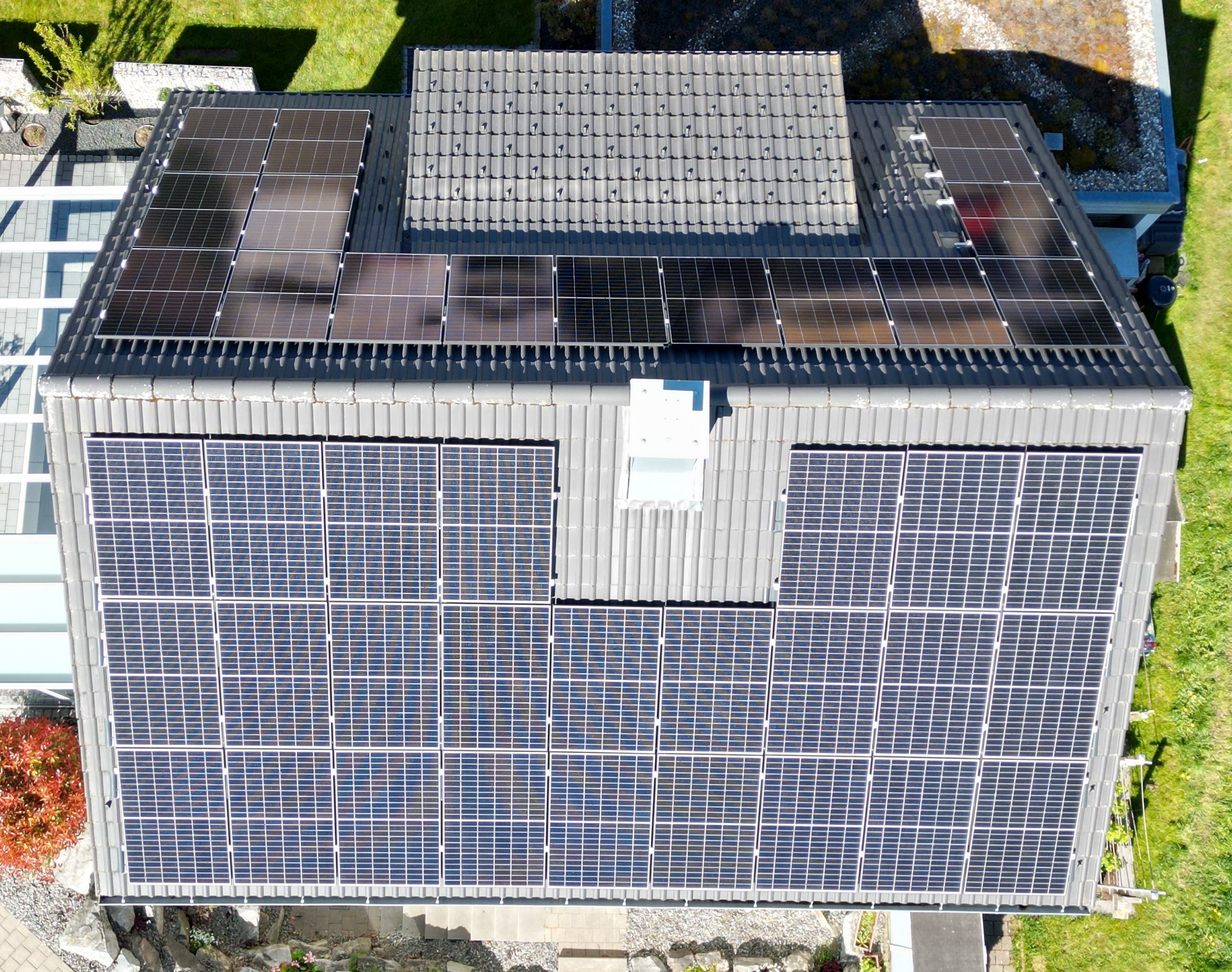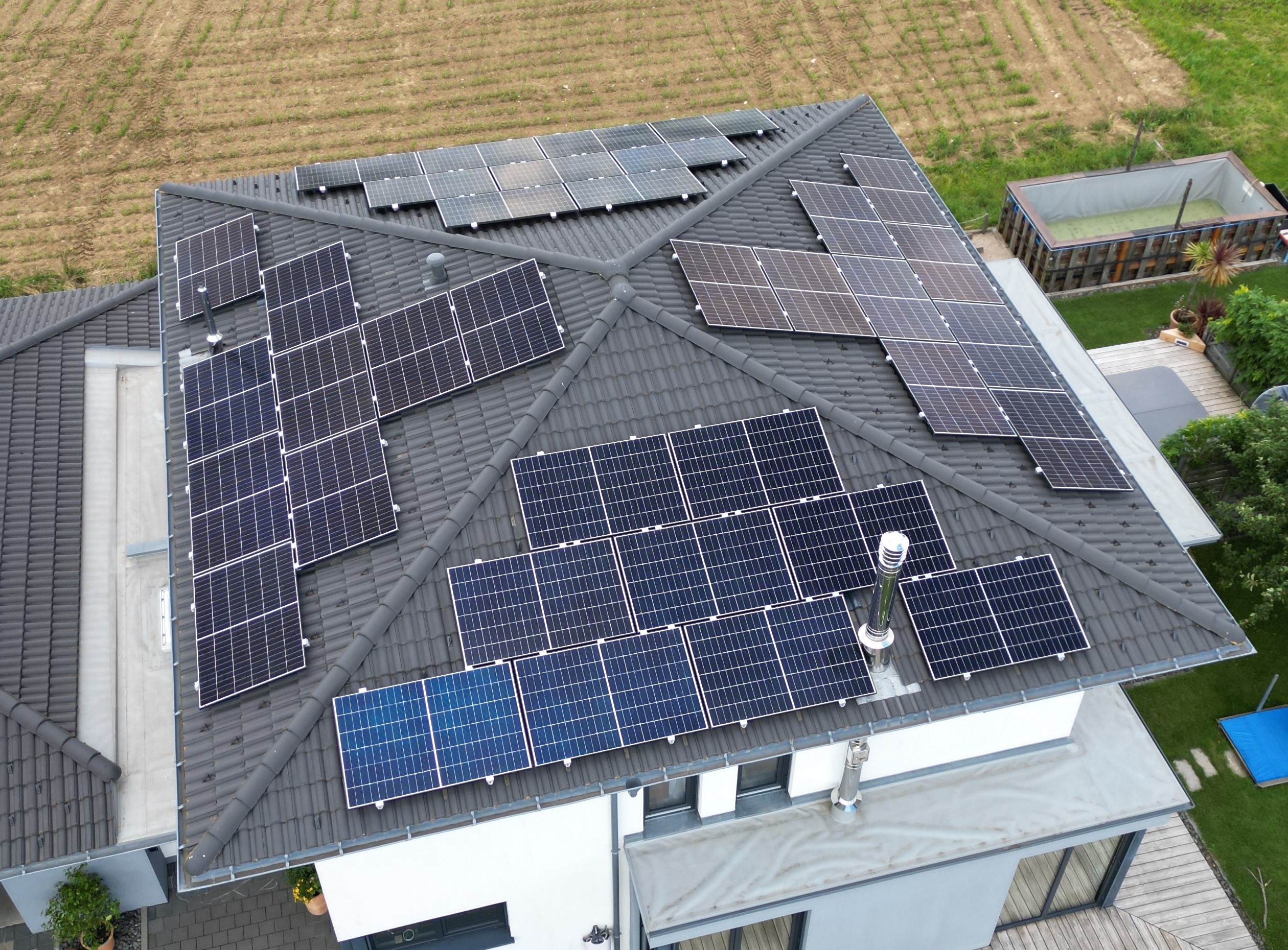 Referenzen Ost-West Anlage 10kWp Ost-West Anlage 7,5kWp Süd Anlage 13kWp Süd Anlage 8kWp mit Speicher Ost-West Anlage 8kWp Ost-West Anlage 29kWp Ost-West Anlage 17kWp Walmdach mit 16kWp Ost Anlage 17kWp mit Speicher undLadestation Flach Dach Anlage Ost-West Ausrichtung und 10° Aufständerung Ost-West Anlage 23kWp mit Speicher